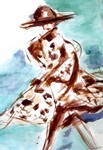 2017Naakt aan het strand in kleermakers - zit . Met paletmes geschilderd