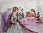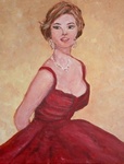 2017Vrouw , zittend voor de spiegel. Half naakt. Acryl, met palet geschilderd.